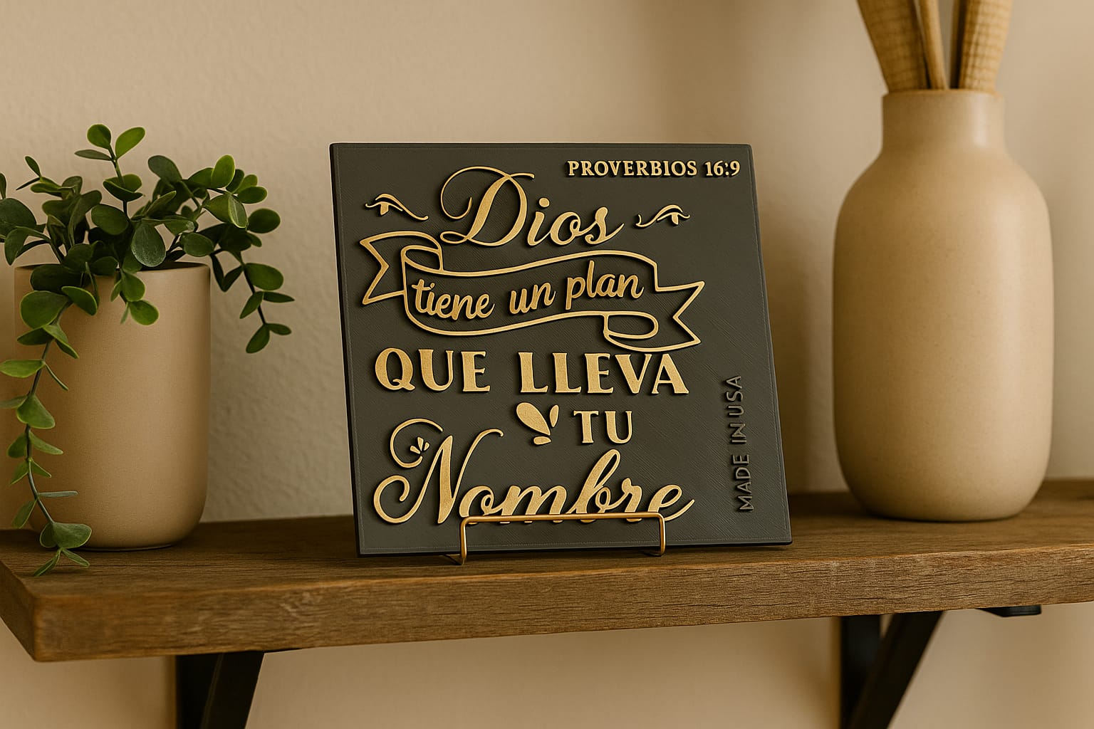 Esta placa es más que un adorno: es un recordatorio diario de que Dios nos conoce por nombre y ha preparado un plan especial para nuestra vida. Perfecta para el hogar, la oficina, la iglesia o como un regalo significativo que inspire fe y esperanza.