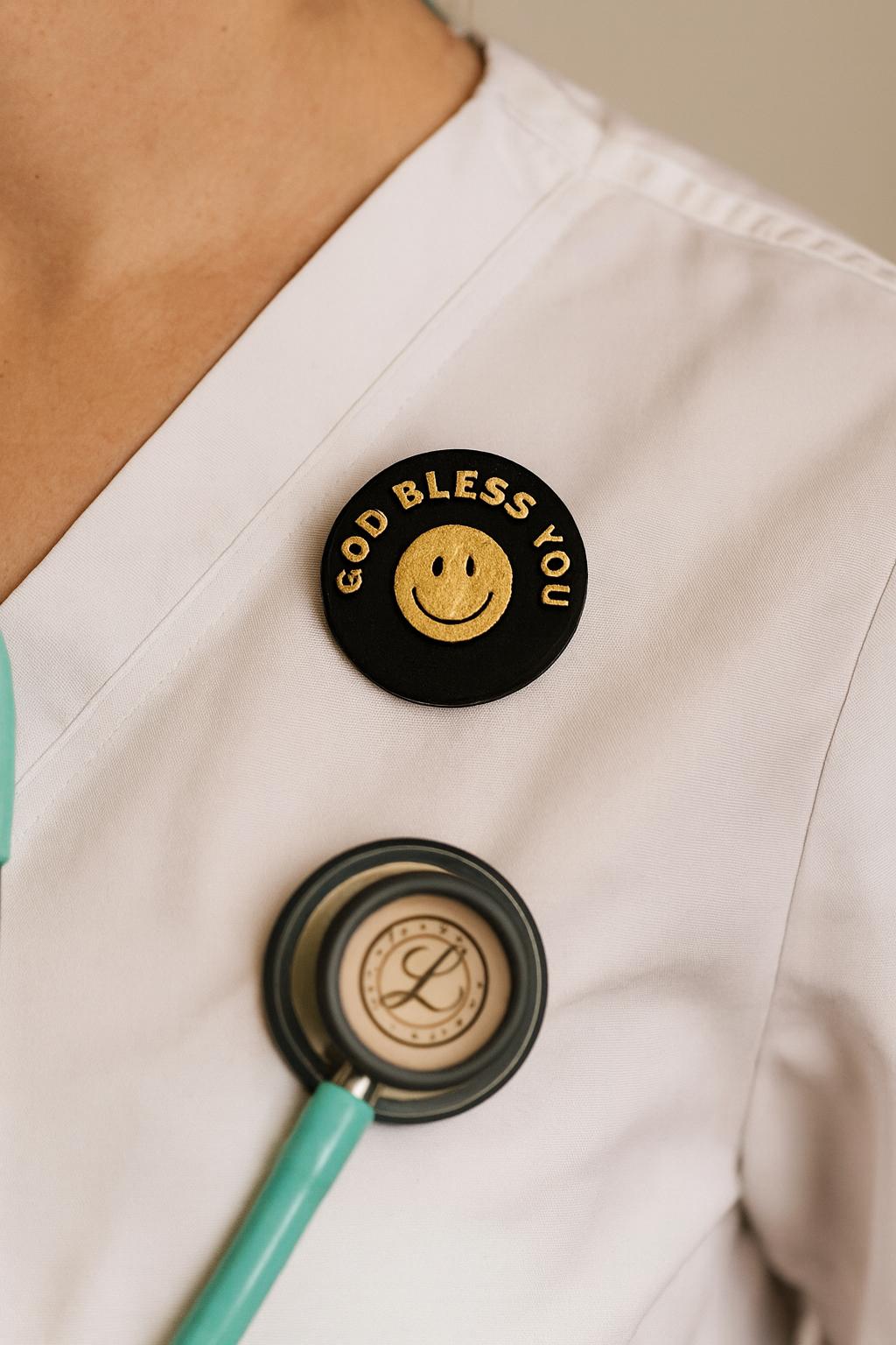 A beautiful 2” x 2” round pin with the uplifting message “God bless you.” Its elegant design makes it a constant reminder of kindness, blessing, and God’s love wherever you go.