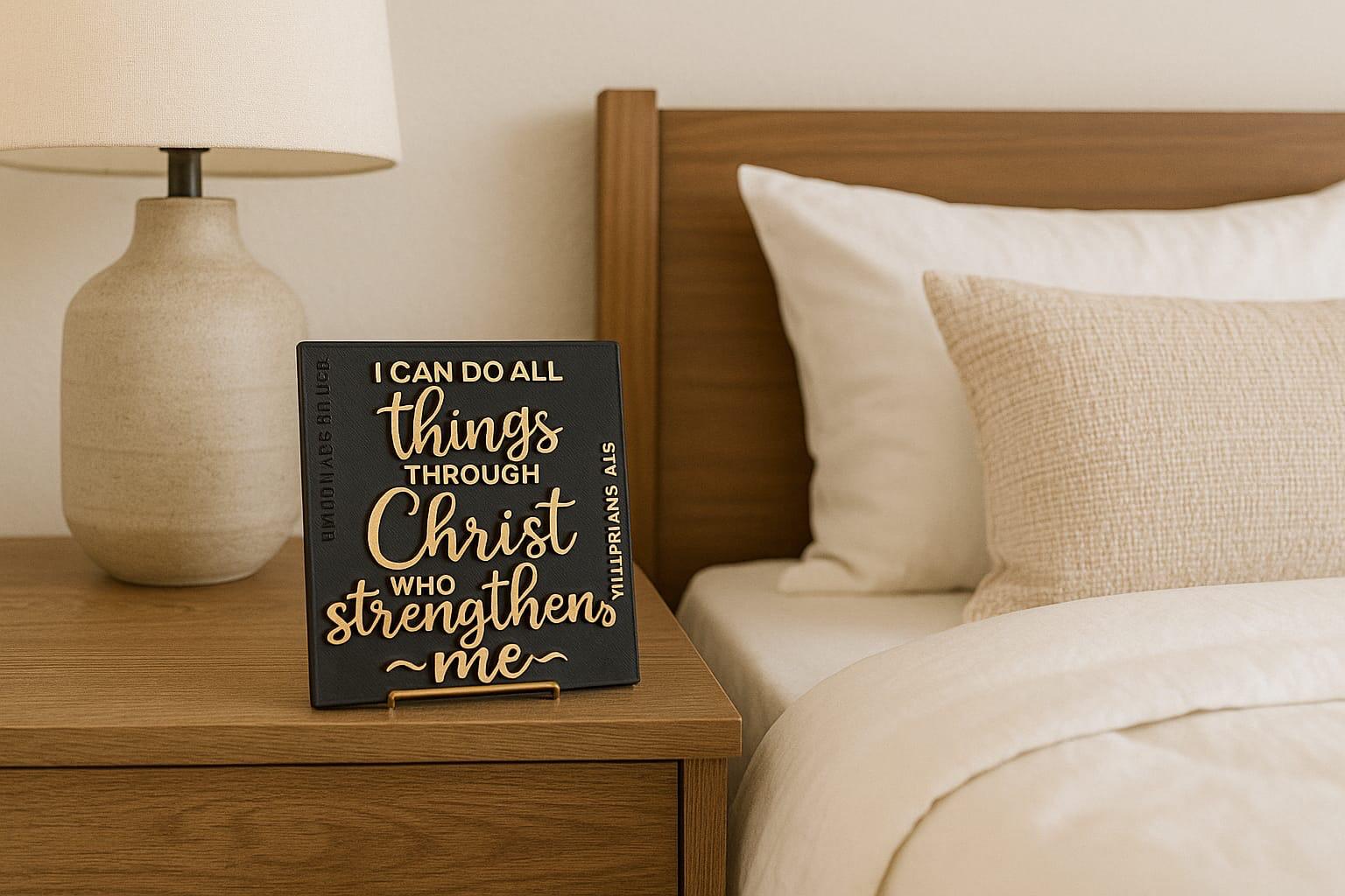 This plaque is more than decoration; it is a declaration of strength and faith. It reminds us daily that through Christ, we are empowered to overcome difficulties and achieve great things. Perfect as a personal inspiration or a meaningful gift for loved ones.