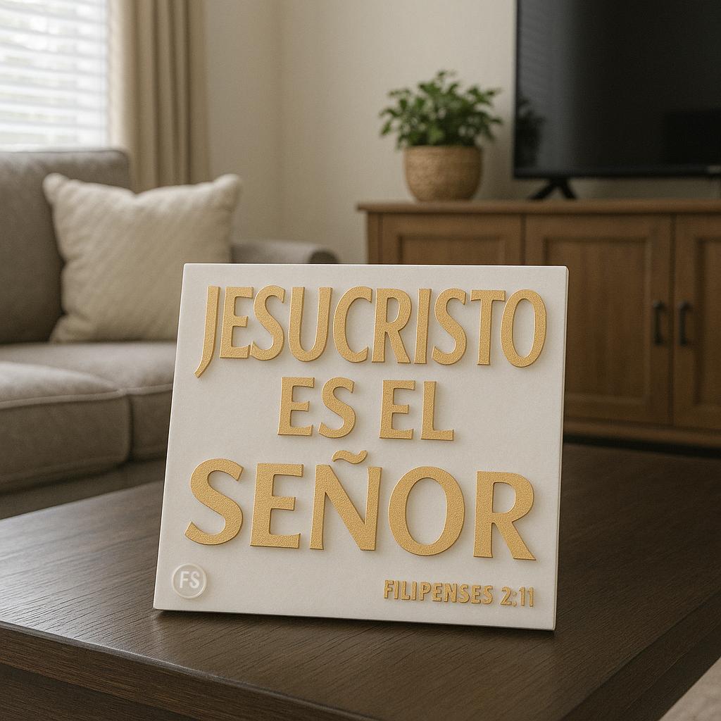 Esta poderosa declaración es una de las confesiones más importantes de la fe cristiana. Reconocer que Jesucristo es el Señor significa aceptar que Él es Dios, Salvador y Rey sobre toda la creación. Es una proclamación de autoridad, amor y redención, recordando que toda rodilla se doblará y toda lengua confesará que Jesucristo es el Señor (Filipenses 2:10-11). Colocar este mensaje en el hogar, la oficina o cualquier espacio es un acto de fe que declara públicamente la soberanía de Cristo y la confianza en su guía y protección.