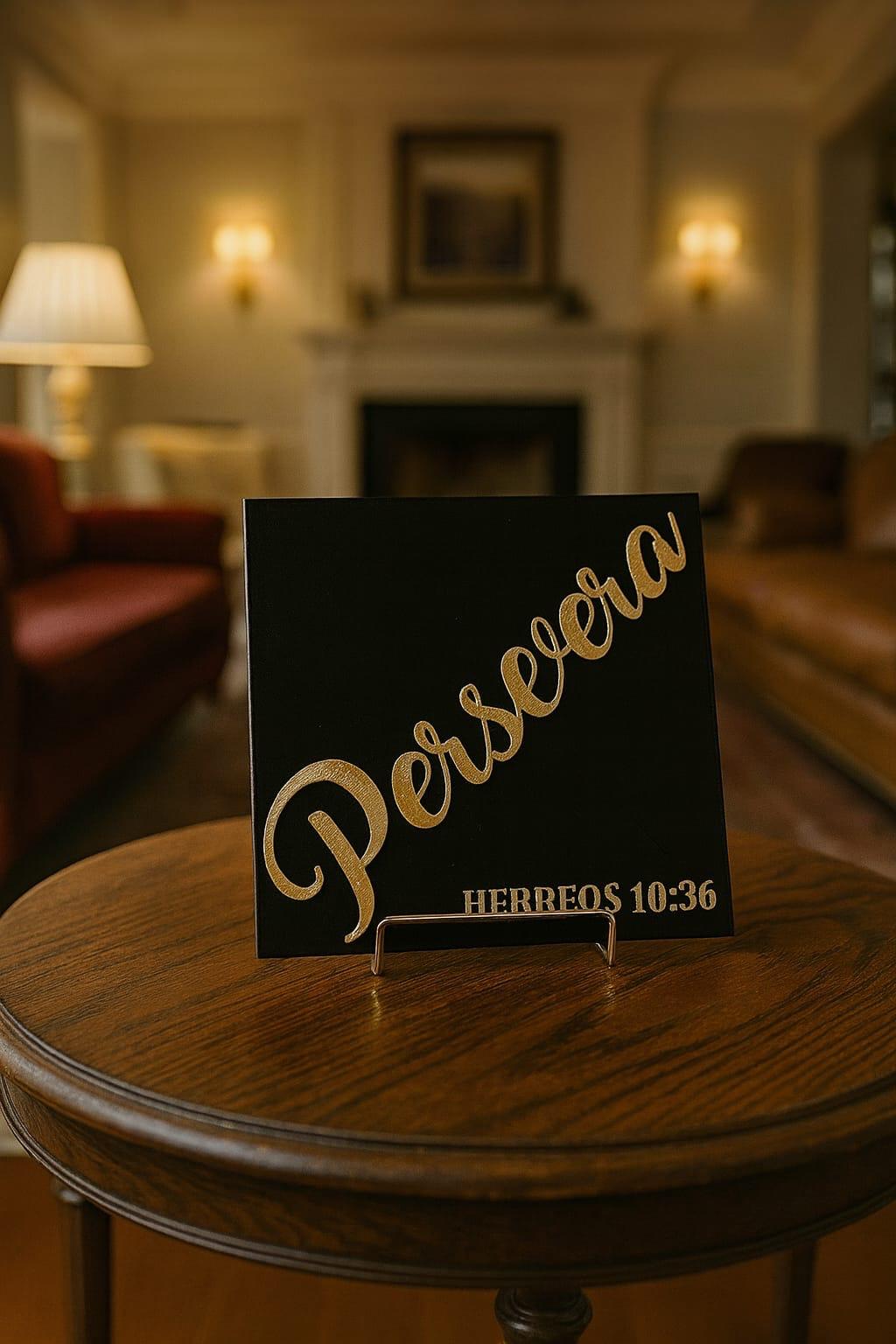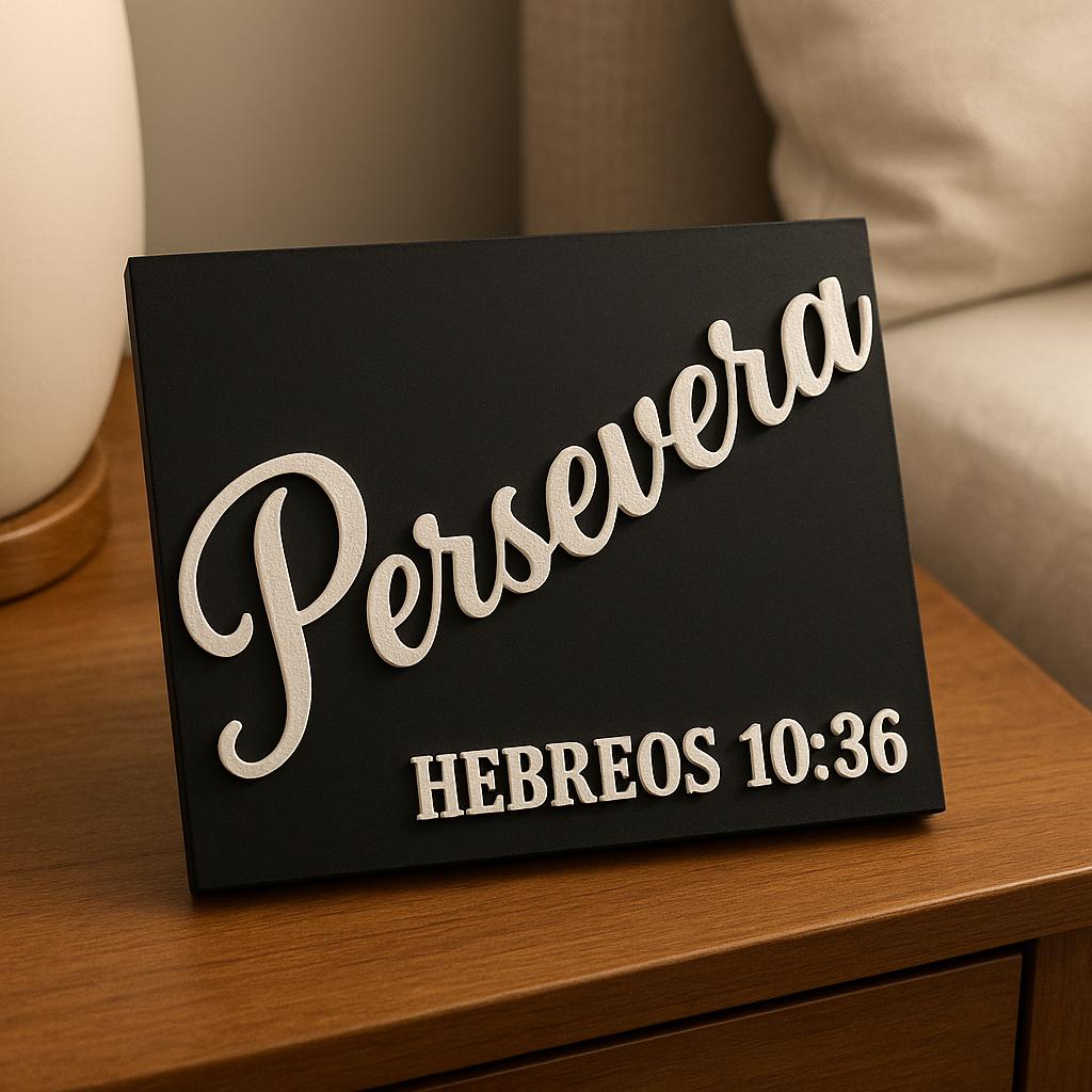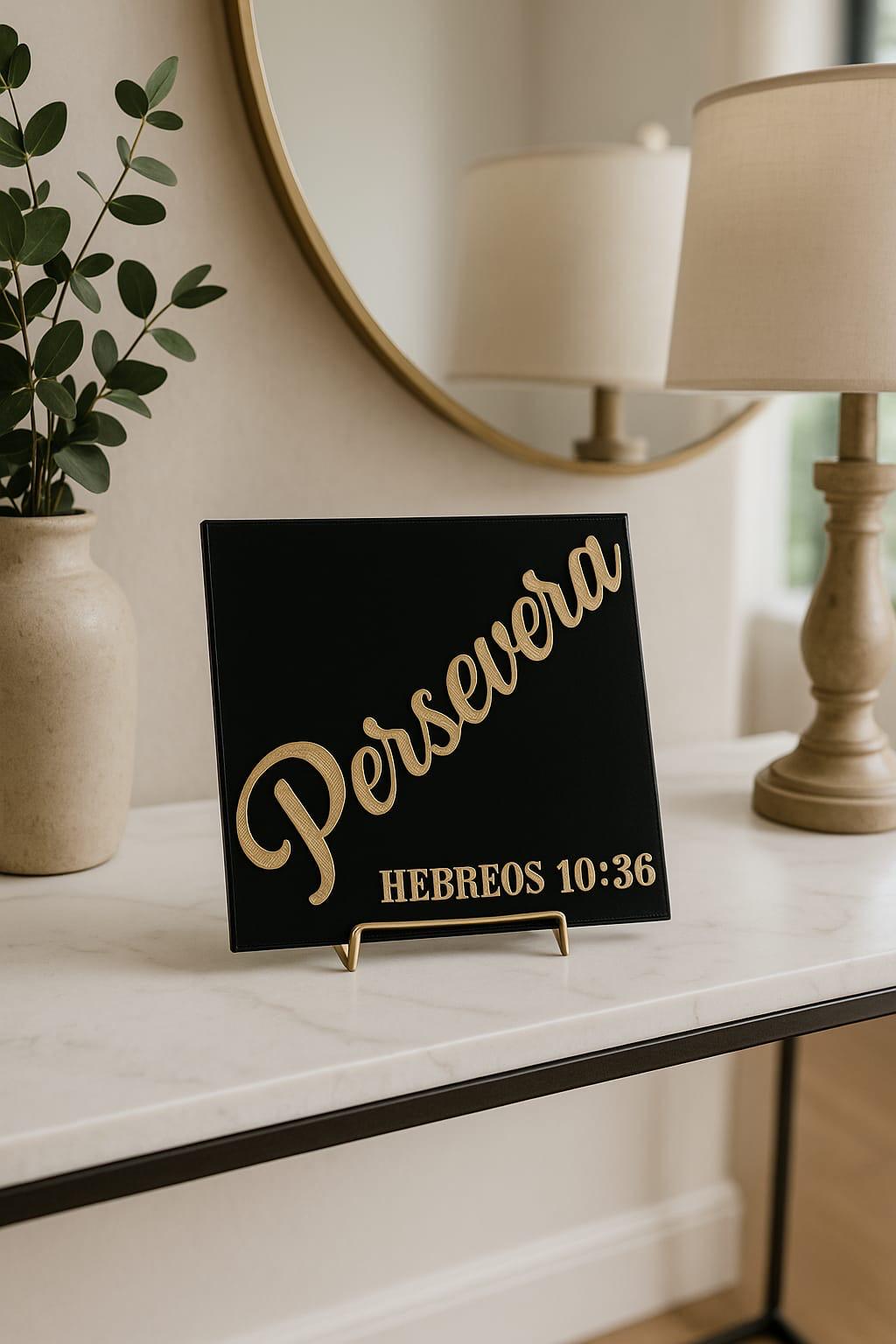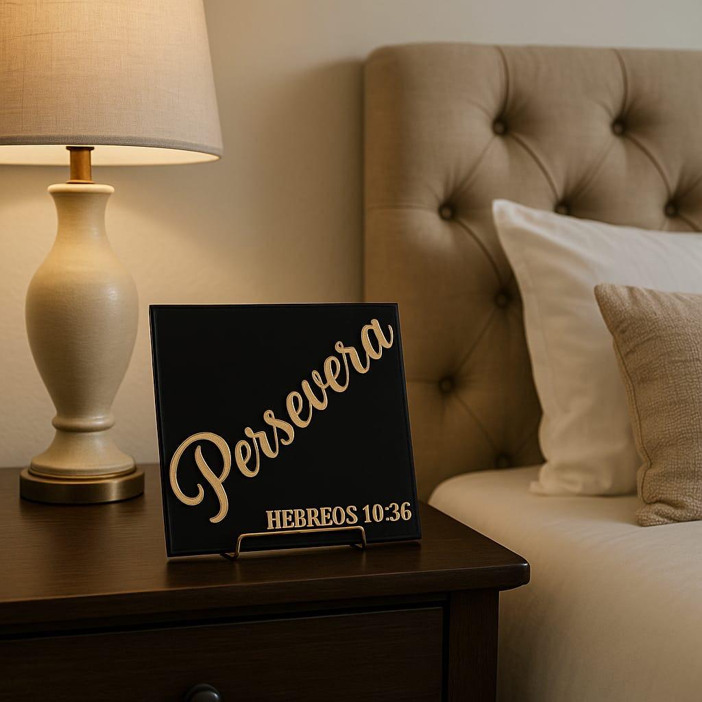 Colocar en la oficina, el estudio, el dormitorio o cualquier espacio donde necesites recordar que la perseverancia, unida a la fe, abre la puerta a las promesas de Dios.