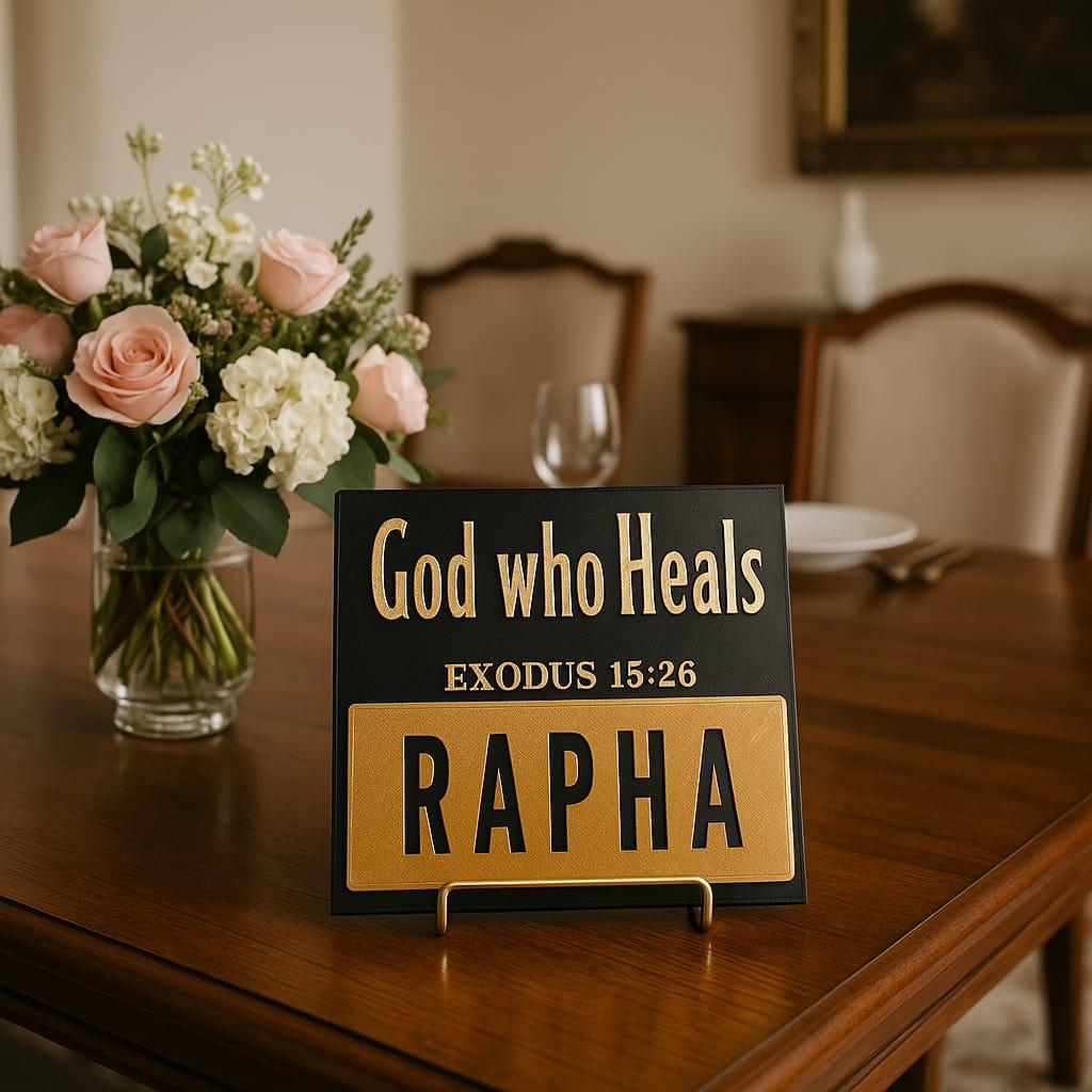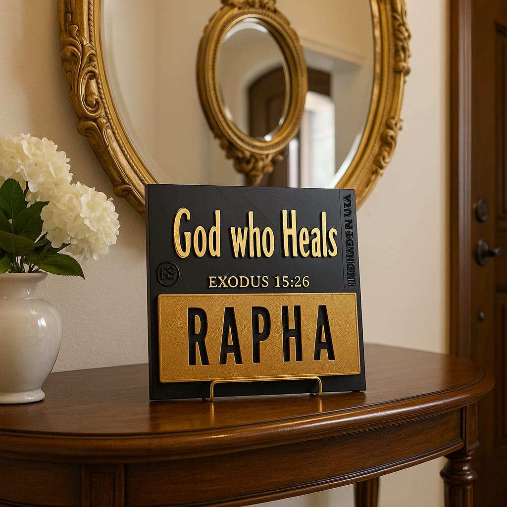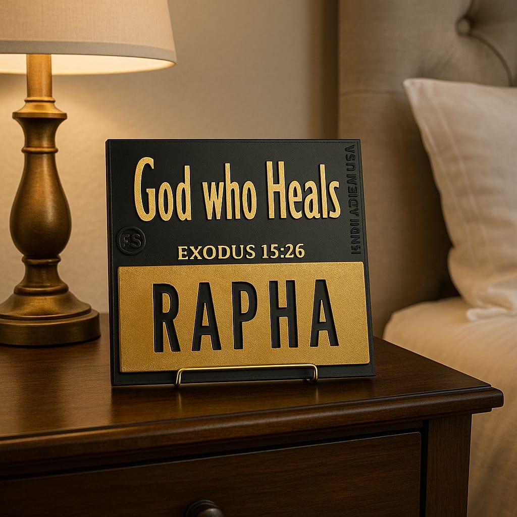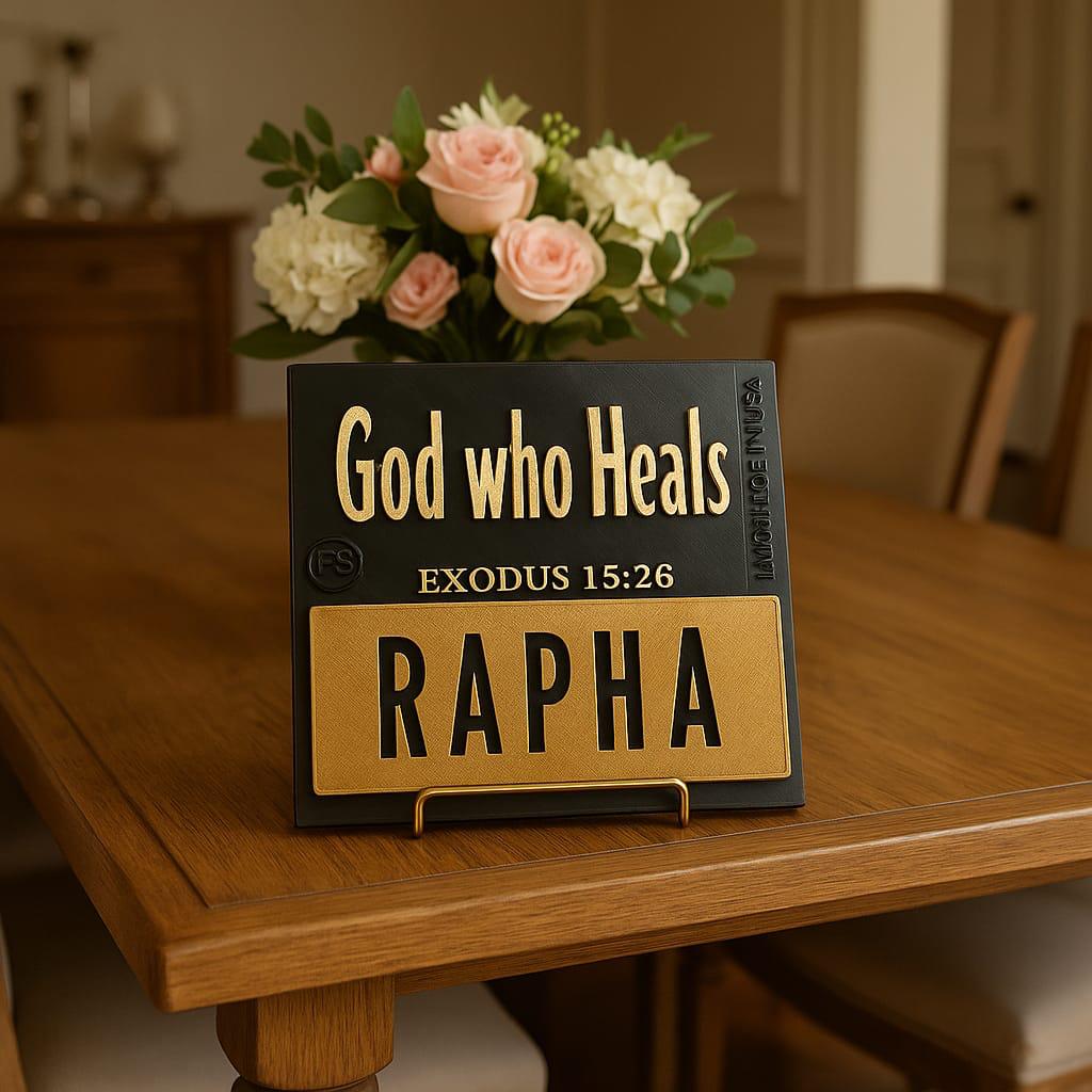 Plaque: RAPHA - GOD WHO HEALS - Made in USA
