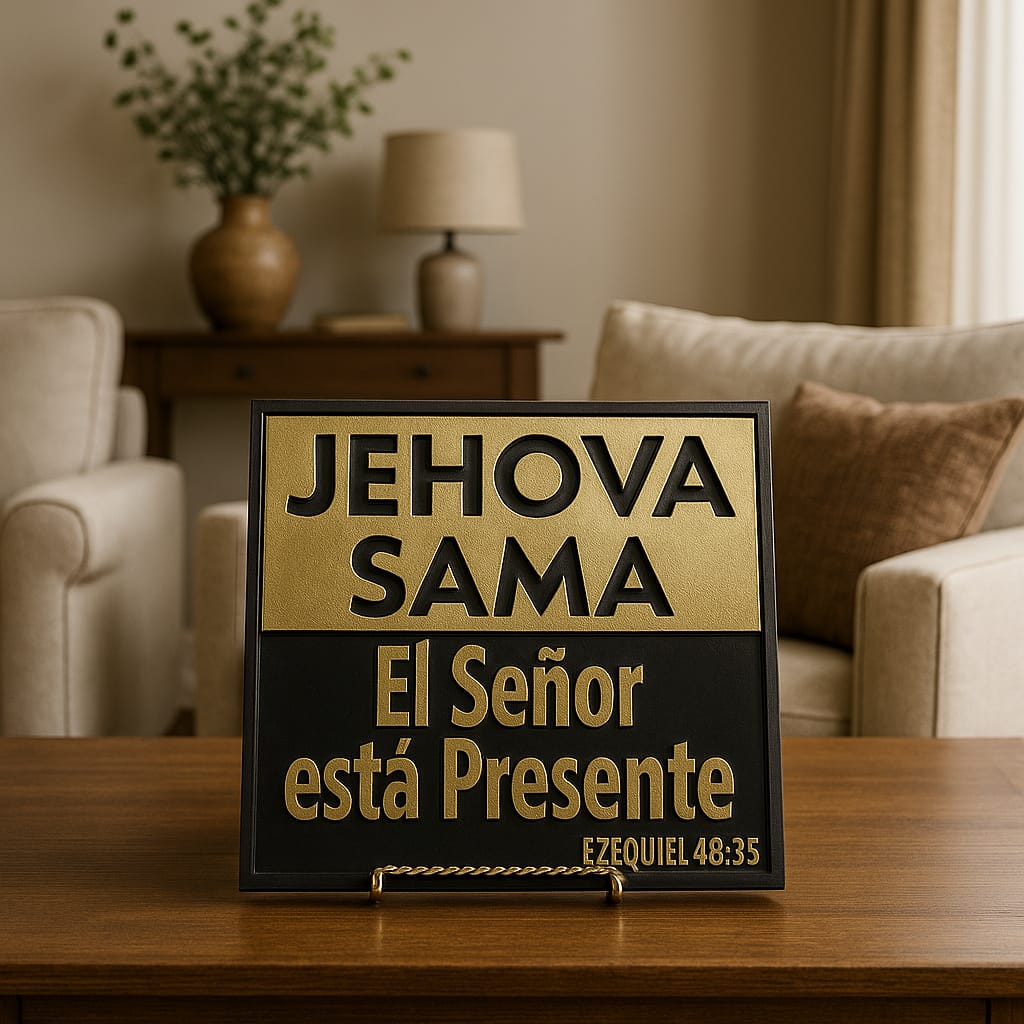 Esta placa recuerda que el Señor de los Ejércitos celestiales está al frente de nuestras batallas. No importa el tamaño del enemigo o la dificultad, Dios es quien pelea por nosotros y garantiza la victoria.